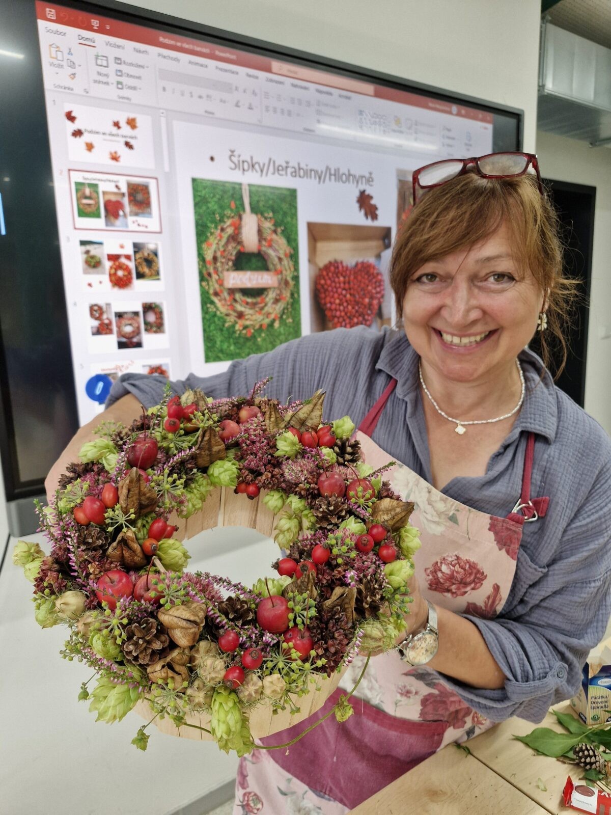 V jejích floristických kurzech se postupuje od jednoduchého ke složitějšímu a dbá se nejen na zvládnutí estetického dojmu, ale také na správné technické zpracování materiálů.