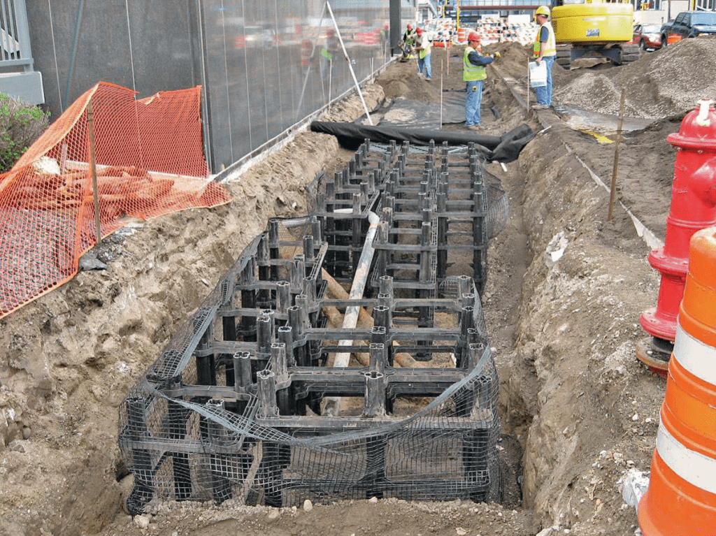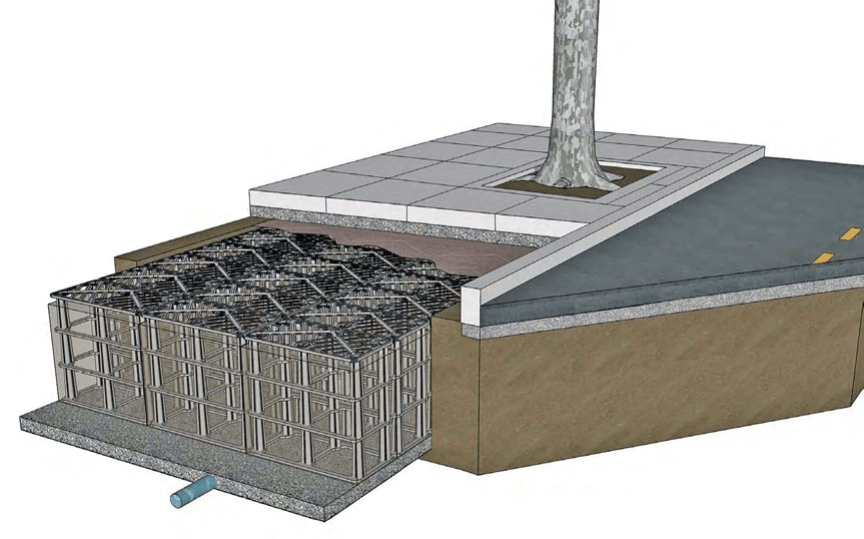 Systém se skládá z řady plastových sloupků, které tvoří modulární kostru krychlí s otevřenými stranami. Buňky jsou umístěny do požadované hloubky a každá řada je uzavřena krytem. Buňky jsou vyplněny hlinito-písčitou půdou, která je jen velmi lehce hutněna. Vzduchová vrstva pod krytem umožňuje zalévání a zároveň zabraňuje poškození krytu chodníku kořeny. Voda se do této vrstvy dostává propustným krytem chodníku nebo z vyústění dešťových svodů.