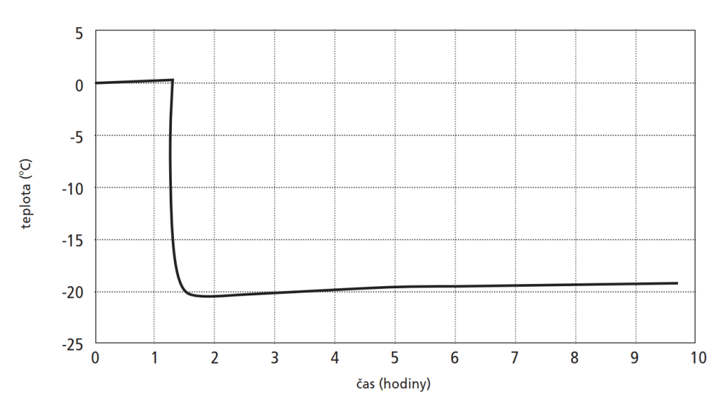 Na obr. 1 je uveden záznam změny teploty chladivé směsi chloridu sodného a napadlého sněhu na začátku března 2005. Směs byla odměřena podle poměrů uvedených v tab.1 a byla uzavřena v teplotně izolovaném prostředí.